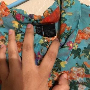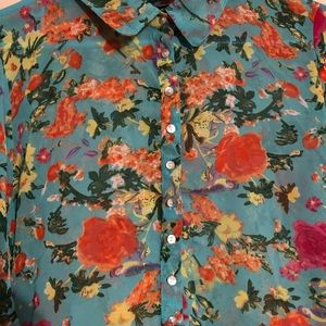 Beautiful buttoned up top. For the girl who loves flowers. Could be worn with some cowboy boots and some jeans.