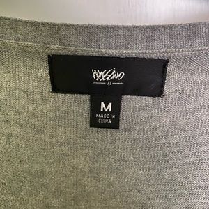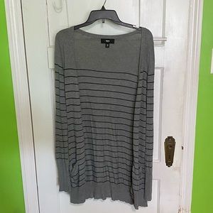 Gray with thin black stripes; super lightweight; can be worn buttoned up or open