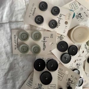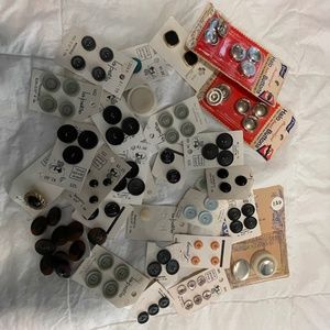 Assorted buttons for sewing and craft projects. New. Some are old and some are newer. Please note that some cards have a complete set of buttons and some are missing some buttons. Cleaned out sewing box and buttons are no longer needed.