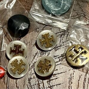 Amazing bundle of new and a few used buttons. There are also thread, beads, and sequins. Brands include TORY BURCH, TRINA TURK, LOFT, BANANA REPUBLIC, ANN TAYLOR, J. CREW, EXPRESS, BEBÉ plus others unbranded.