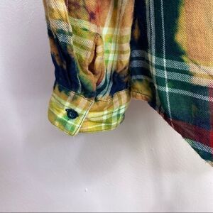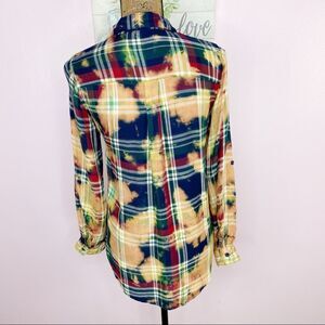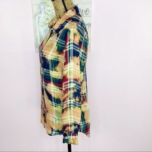 Buttons Bleach Dyed Plaid Flannel Button Front Shirt Peach Small