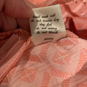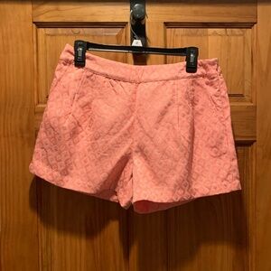 Buttons Embroidered High Rise Diamond Print Shorts in salmon. Side zipper closure. Women's size medium. Gently used with no flaws.
