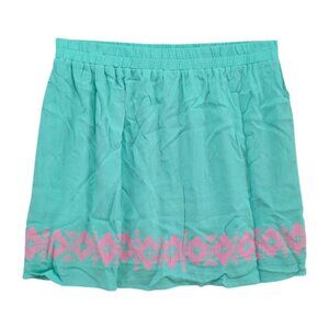 Buttons Mini Skirt Teal Green Pink Printed Pleated Lightweight Pull On Size M