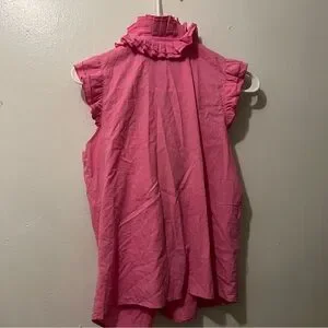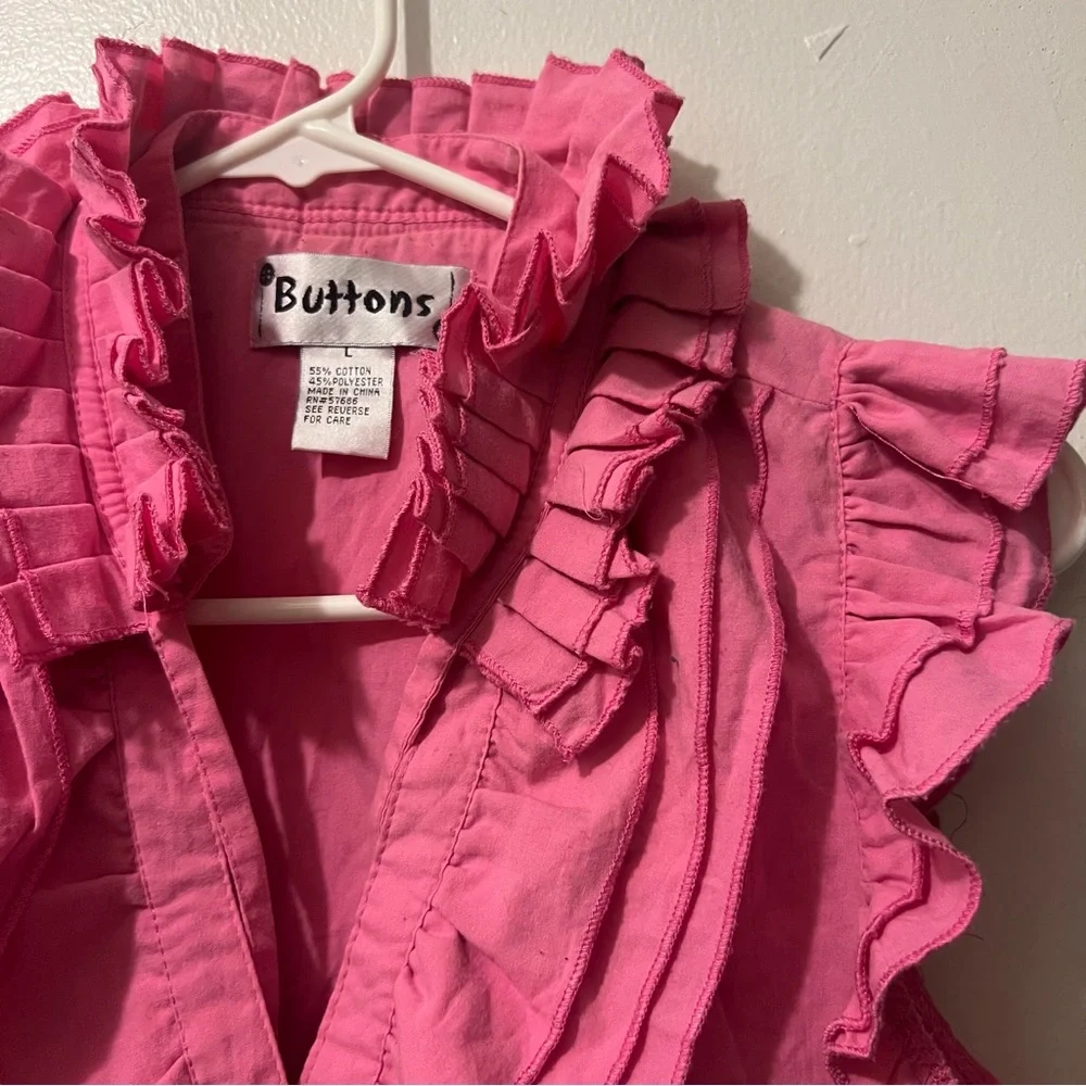 Charming sleeveless pink top with ruffles. Crafted by Buttons. Perfect for a stylish girls night out!