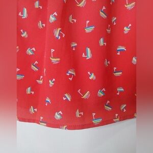 Brighten up your summer style with this fun and breezy red skirt from Buttons, featuring an allover colorful sailboat print. Designed with a comfortable elastic waistband and lightweight fabric for easy wear. Perfect for warm weather, casual days, or seaside getaways. Size Medium. Excellent pre-owned condition.