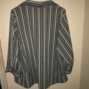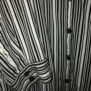The is a very light & simple stripped button up! I absolutely love the fact that it could go with anything! Dress it up or down and it will be perfect for all occasions. It does not have much stretch so please remember when it comes to size!
