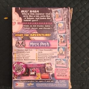 Dive into the universe with the Buu Saga Hero Starter Deck. Featuring vibrant yellow and red colors, this collectible card game is perfect for fans and collectors. Experience fast-paced battles and relive iconic moments. small tear on side. hard to find