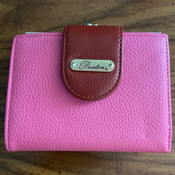 Buxton Beautiful Vegan Leather Lexington Wallet Pink Brown Tan Kisslock