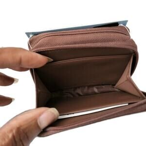 Two zippered compartments, Front pocket for ID, Holds 11+ cards, Holds coin & bills