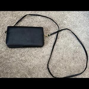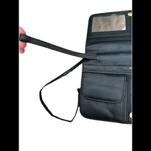 Can be worn as a purse with strap! Strap has some wear but still functions. Wallet is in great condition and very soft with a hidden handle(noted in picture.)