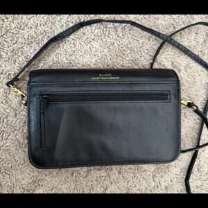 Buxton Cowhide Black Leather Trifold Wallet Checkbook Purse Strap Womens