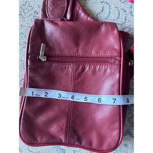 Buxton Red Leather Sling Bag Adjustable Boho Retro 70s 90s Festival Travel Soft