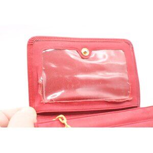 Buxton Red Leather Top Grain Cowhide Folding Wallet Coin Purse w/Keychain Vintage