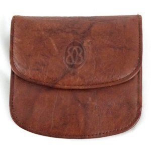 Brown leather wallet by Buxton that has a "marbled" appearance to it. The logo is on the front flap. There is an outside slip pocket. The flap snaps closed and inside there are two pocket. One opens larger and one is a slip pocket. This portion is not leather but some sort of man-made material that is plastic like. On the back side of the outer slip pocket, there is another snap closure and when you open it, there is two compartments for dollar bills. This appears to be leather or similar. Closed, this wallet measures 3.75" x 3.5" and is .5" at it's thickest when empty. It is in excellent used condition with only some very faints surface scratches that are barely noticeable in person. This item may not be able to be shipped to all countries due to thatt countries regulations.