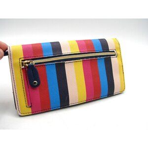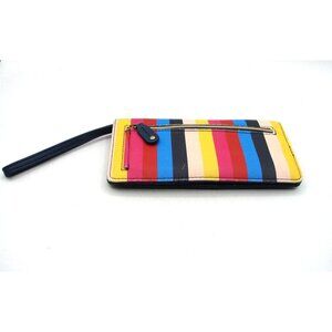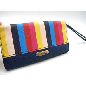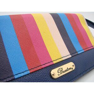 Buxton Wallet Rainbow Striped ID Cards Womens Faux Leather Retractable Wristlet Strap