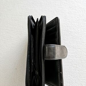 Interior details - inside zipper pocket and 2 credit card slots, checkbook cover, I.D. window, bill compartment, 2 storage pockets and 5 additional credit card slots
