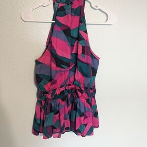 Buy 1 Get 1 Free Tops! Nine West Pink and Blue Halter Peplum Top