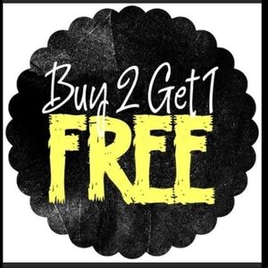 Buy 2 items get the 3rd item free of equal to or lesser value.