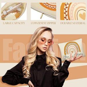Proper Size: each rainbow makeup bag for women measures 23.5 x 17.5 cm/ 9.25 x 6.9 inches, enough capacity to hold skin care products, keys, cards, ID cards, mobile phones, tissues, cosmetics like lipstick, eye shadow, liquid foundation, makeup tools and so on, bring convenience to life storage and travel Washable Material: our rainbow canvas travel pouches are made of thick canvas and smooth zipper, not easy to break or deform, which are also printed with unique font, bright colors, not easy to fade and wear, the bag can handwash or spot clean with mild soap and water for your next use Widely Applied: these quotes printed cosmetic pouches can be applied as makeup bags, travel bags for wedding, travel, business trip, camping and other outdoor activities, they are also nice to store keys, phone, card, jewelry, cosmetic items and so on, practical and delicate, you can also send them as ideal presents to others on important days