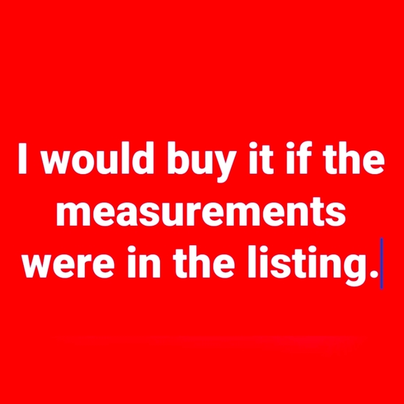 I am tired of finding things I love, and no measurements are in the description. I ask for them and no one responds, but they will send an offer. Please share this so it gets around to the listers who don't include measurements. I love everybody.