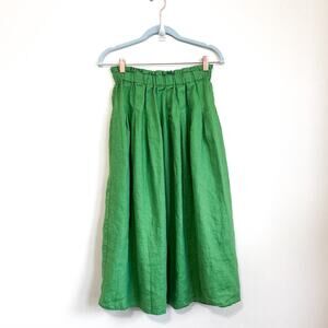 Buykud Linen Womens Midi Skirt Size M Green Boho Pull On Pockets Boho Coastal