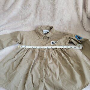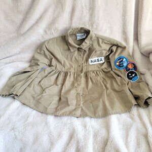 Buzz Aldrin NASA Peplum Blouse Space Top Button Front Tan Girls Size Small