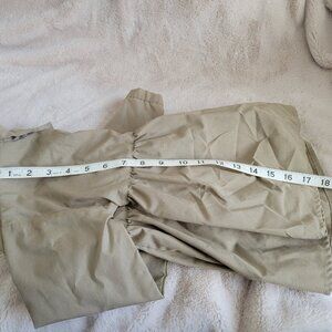 Up for sale is Buzz Aldrin NASA Peplum Blouse Space Top Button Front Tan Girls Size Small. Great preowned condition! No rips, stains, repairs, etc. Could use an iron (I don't own one). Please view all photos closely! Has patches on one sleeve. There is the word NASA on the front breast area. And writing on the back. Measures roughly 14" armpit to armpit and 17" from shoulder to hem. Please view ALL photos. Please double check measurements. I do not accept returns because it doesnt fit. That's what the measurements are for!