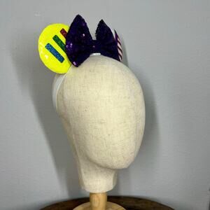 One ear shines in yellow-green sequins and the other in white sequins, both decked out with glittery Space Ranger details. Topped with a bold purple sequin bow, these ears are perfect for any Toy Story fan ready to take on the galaxy (or the parks)! 👾💫