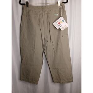 Buzz Off Insect Shield Repellent Apparel Exofficio Khaki Canvas Capri Pants 10, in excellent pre-owned condition, never worn, still has original tags. Marked as a women's US 10, measurements are taken while laying flat and are approximate: (see photos)