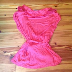 Rayon wraparound short sleeve top with contrast ruffle detail and left side tie. NWOT