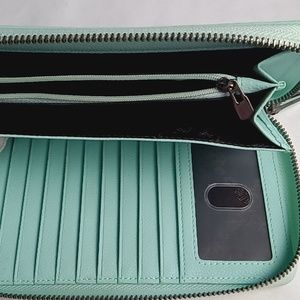 Beautiful mint green soft easy to maintain material. RFID Protection. Never used.