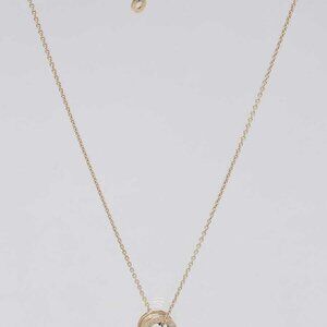 The B Zero1 pendant necklace is a signature piece from the legendary jewelry design house Bvlgari. It features a clean, modern design with a gold central band surrounded by two gold rims with the BVLGARI logo engraved on both sides.