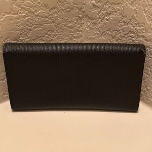Bvlgari Foldover Long Wallet Black Textured Leather Multicompartment Travel