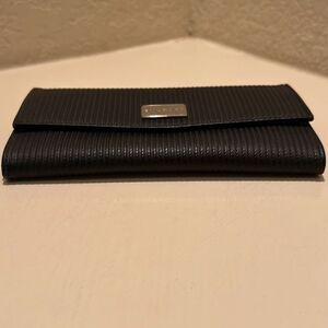 Bvlgari Foldover Long Wallet Black Textured Leather Multicompartment Travel