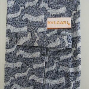 Bvlgari 100 silk 7 fold tie in blue on blue antelope pattern. Matching keeper and lining. Made in Italy.