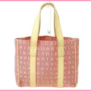 Bvlgari Tote bag Logo Mania Red Beige Woman Authentic Used