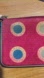 Chic bvlgari clutch with bold pink and blue design. Ideal for a stylish statement.