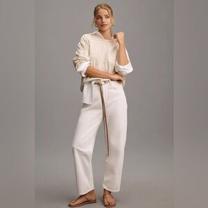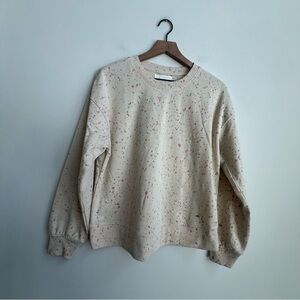 By ANTHROPOLOGIE Paint Splatter Long Sleeve Top Crew Sweatshirt Ivory Small