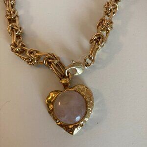 By Alona Eva gold heart necklace in Rose pink quartz