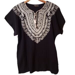 By Altundag 100% Cotton Floral Embroidered Crochet Tunic Size Medium