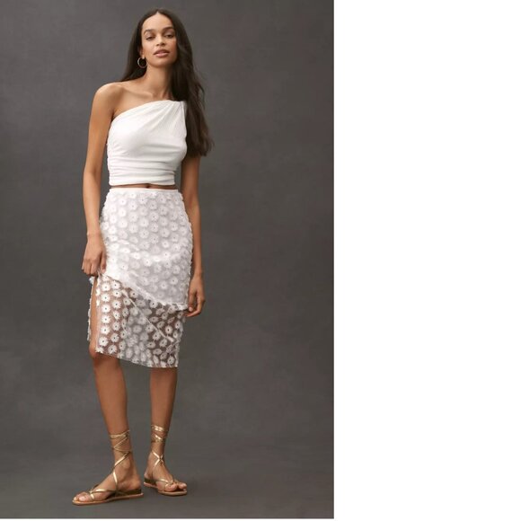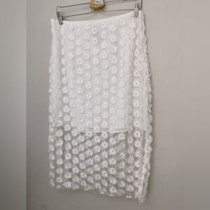 By Anthropologie 3D Texture Sheer Slip Midi Skirt size L white color