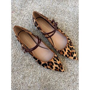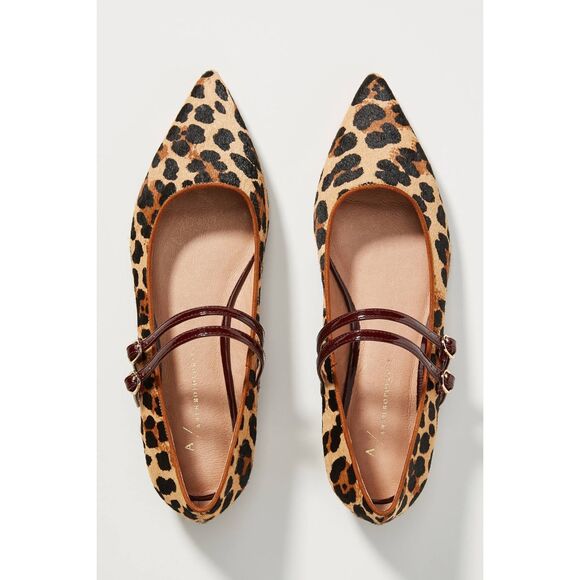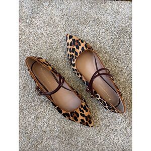 By Anthropologie Abbott Double Strap Leopard Flats Tan, Black Size 10