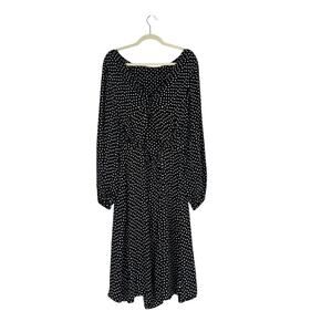 Step out in style with this elegant black polka dot dress. Perfect for any occasion, this dress features a chic design that flatters every silhouette. Charming polka dots and au courant puffed sleeves make this midi dress a feminine essential.