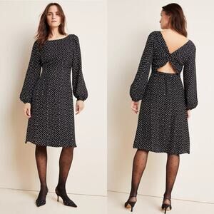 By Anthropologie Agatha Midi dress Polka dot cut out size 12 Elegant feminine