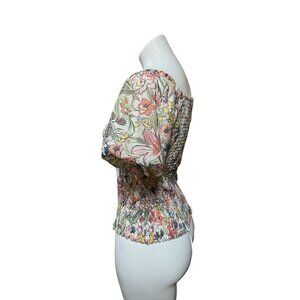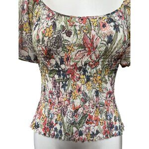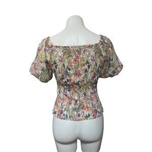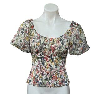 By Anthropologie Aurelia Floral Smocked Mesh Net Top Small Puff Sleeve