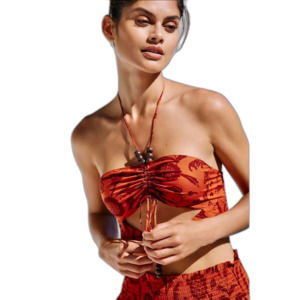 By Anthropologie Beaded Skirt Set Orange Rust Tropical Print NWT