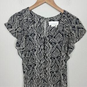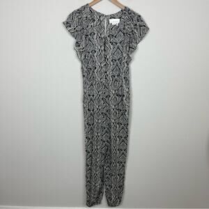 By Anthropologie Black Tan Geometric Floral Short Sleeve Cropped Length Jumpsuit 2