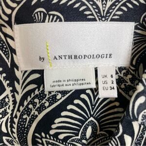 By Anthropologie Black Tan Geometric Floral Short Sleeve Cropped Jumpsuit 2