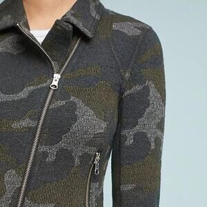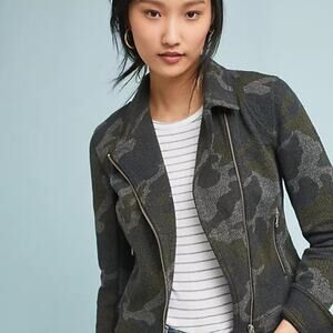 By Anthropologie Camo Print Moto Jacket Lightweight Knit, size XS