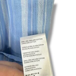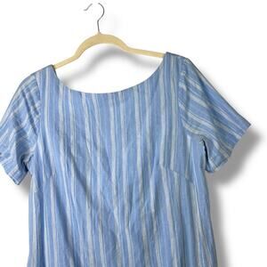 By Anthropologie Cape May Blue Stripe Boat Neck Bow-Tie Back Linen Mini Dress. Pullover style, Mini Silhouette, Light airy mini dress.